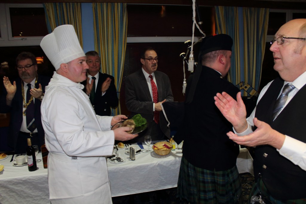 Piper Brian Knight leads the haggis into the 2016 Burns Supper